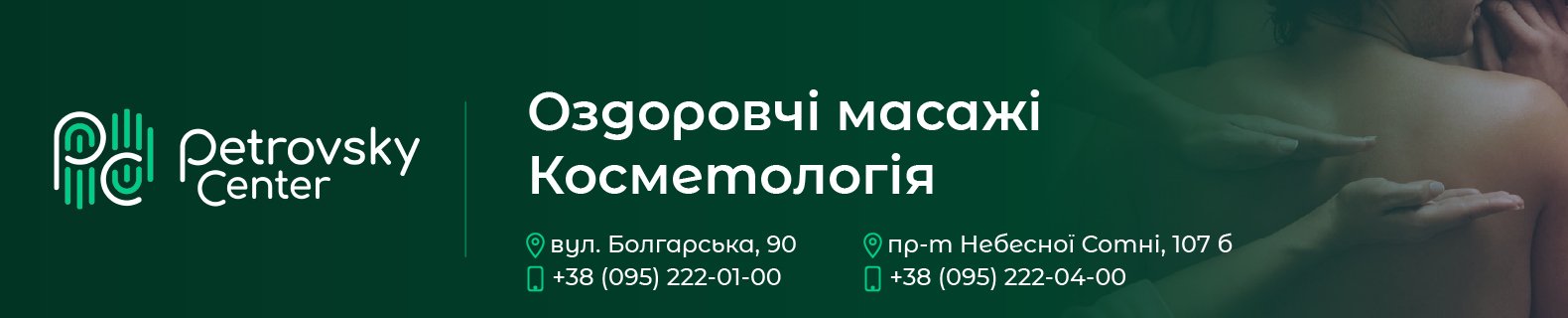 Рады приветствовать вас в Массажно-оздоровительном центре Евгения Петровского. С 2007 года мы работаем в сфере здоровья и красоты, специализируемся по таким направлениям: массаж (для взрослых и детей с 3-х лет), мануальная терапия, иглорефлексотерапия; устранение сколиозов, триггерных точек, мышечных спазмов, протрузий и межпозвоночных грыж. Наши мастера грамотно подберут для вас индивидуальную антицеллюлитную программу (антицеллюлитный массаж, обертывания, пиллинги). У нас вы сможете насладиться СПА и Релакс процедурами, стоун терапией.